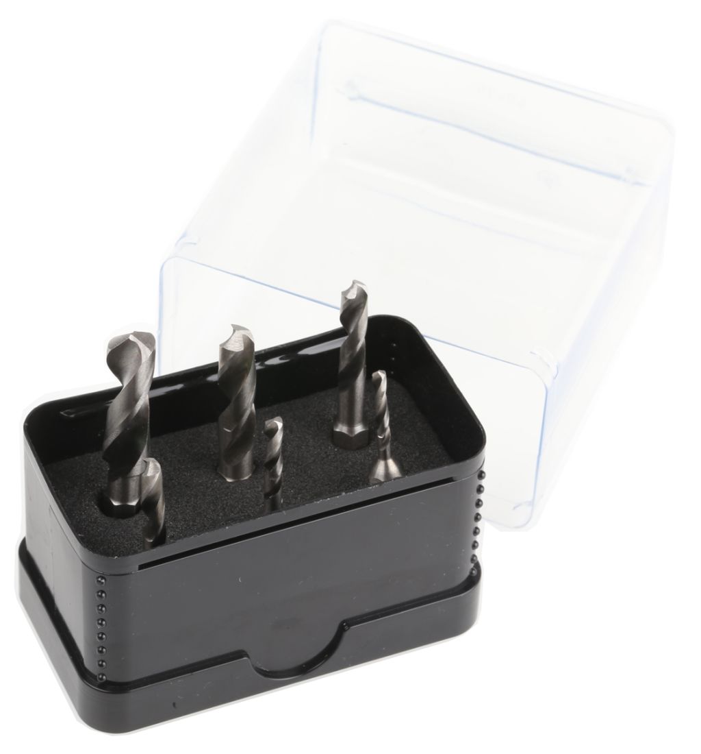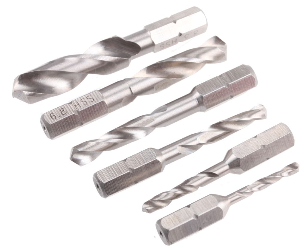 Set contains 6 drills, one each size M3 to M10 tapping