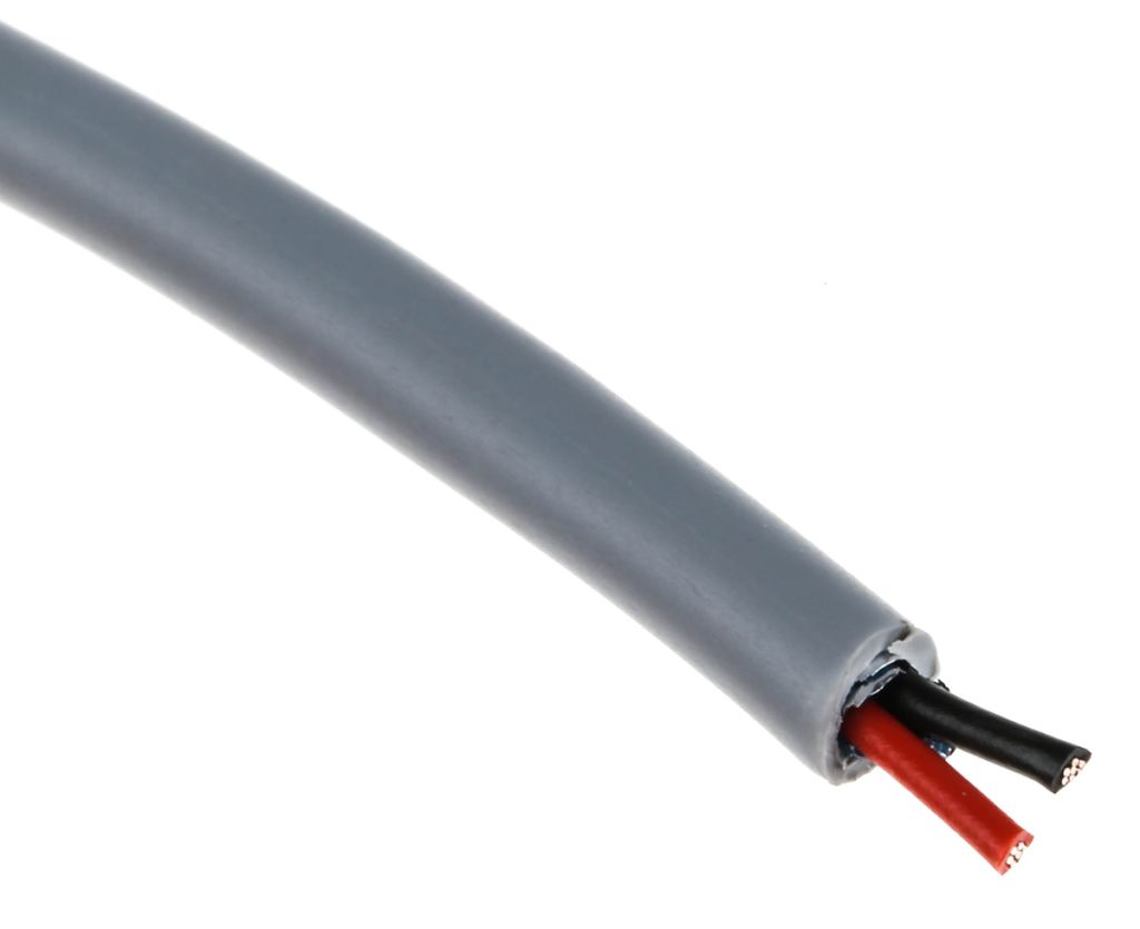 Pairs of stranded tinned copper conductors, insulated with PVC are twisted together, wrapped in an aluminised tape with a tinned copper drain wire, and a grey PVC outer sheath.