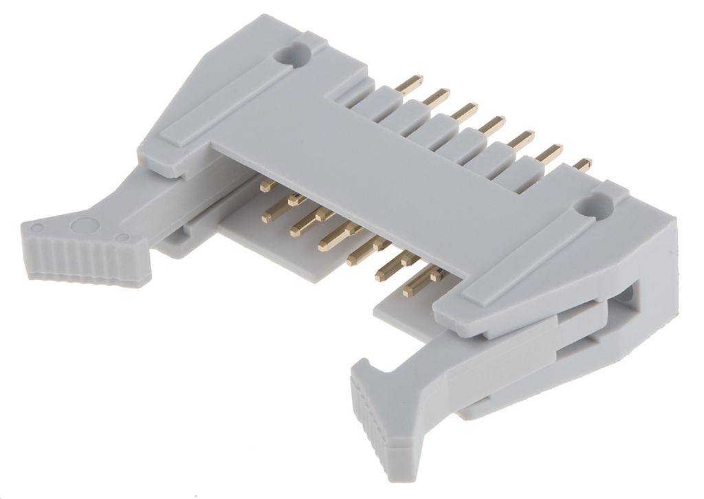 A range of 2.54mm pitch PCB mount box headers and IDC ribbon cable sockets that are compatible with connectors conforming to BS9525-F0023. These 2.54mm Universal PCB headers and IDC sockets have grey UL94V rated glass filled polyester housings and gold flash plated contacts and terminations. The 2.54mm universal headers are fully shrouded with long ejection latches either side. The 2.54mm universal IDC ribbon cable sockets have no centre bump, have an open design making them suitable for daisy chaining and are supplied part assembled with a strain relief for rapid cable insertion.