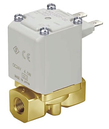 The SMC VX 2 Port Direct Operated Solenoid Valve is suitable for use with air, water, oil and medium vacuum environments. Air models are available with aluminium or resin bodies, while water/oil/medium vacuum models are available with brass or stainless steel bodies.