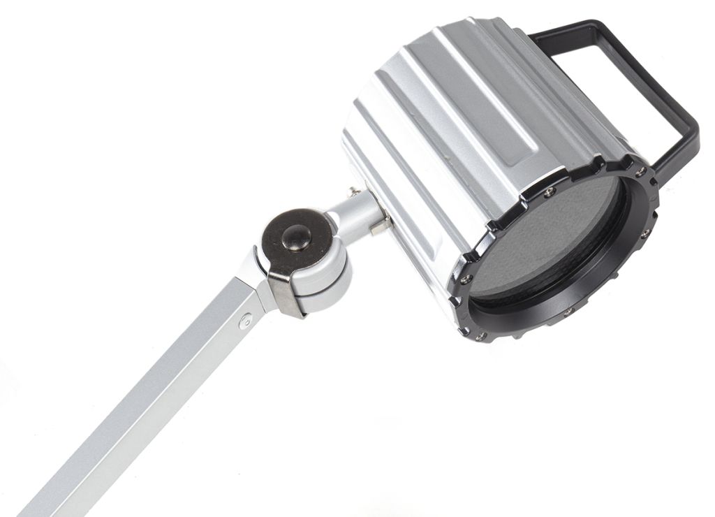 This adjustable machine light is furnished with 1.8 meters of power cord, with no plug supplied. An easy-to-install mounting base is included so that the lamp can be securely affixed to the machine or work station.
