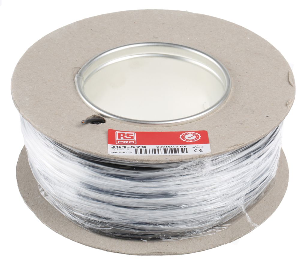 | Product description | RS PRO Black 0.5 mm² Equipment Wire, 20 AWG, 16/0.2 mm, 100m |