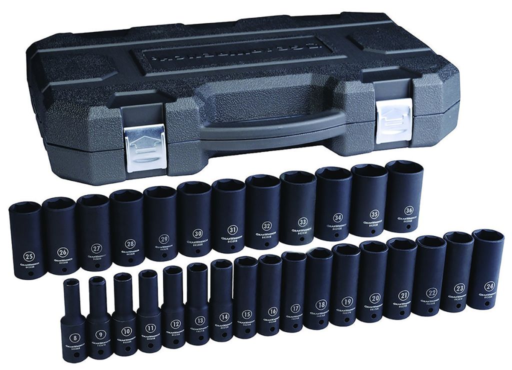 A 29 piece 1/2 in drive 6 point deep impact socket set from GearWrench. Made from chrome molybdenum for added strength and durability and featuring surface drive technology for reduced fastener rounding.