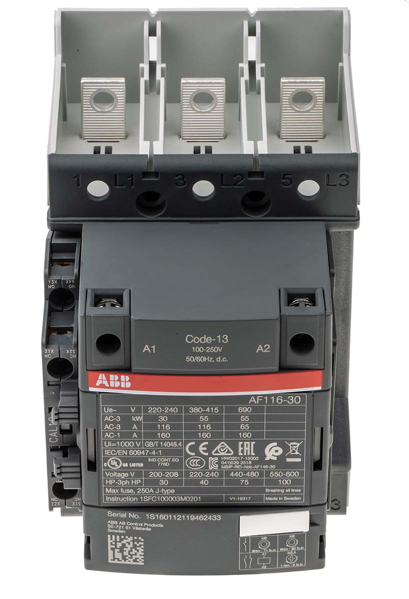 ABB AF Range AF116 3 Pole Contactor – 160 A, 230 V ac Coil, 3NO, 55 kW