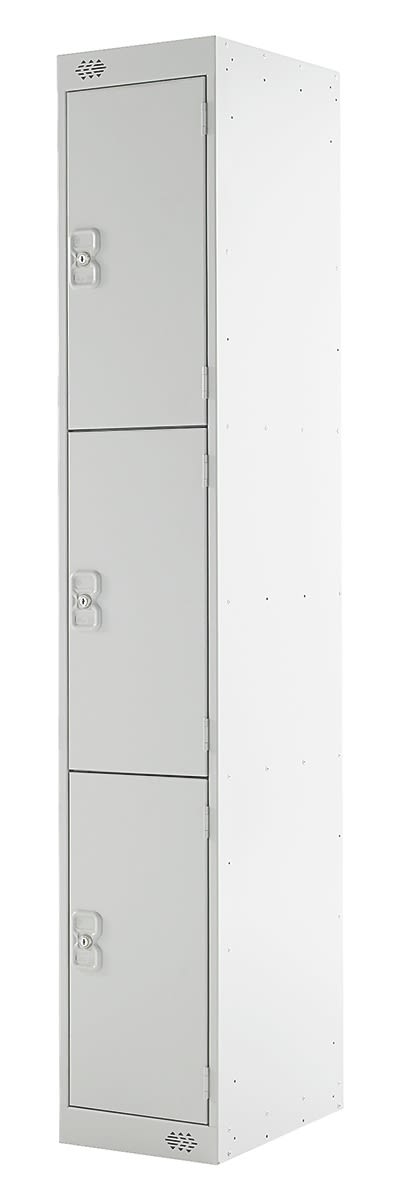 RS PRO 3 Door Steel Light Grey Storage Locker, 1800 mm x 300 mm x 300mm