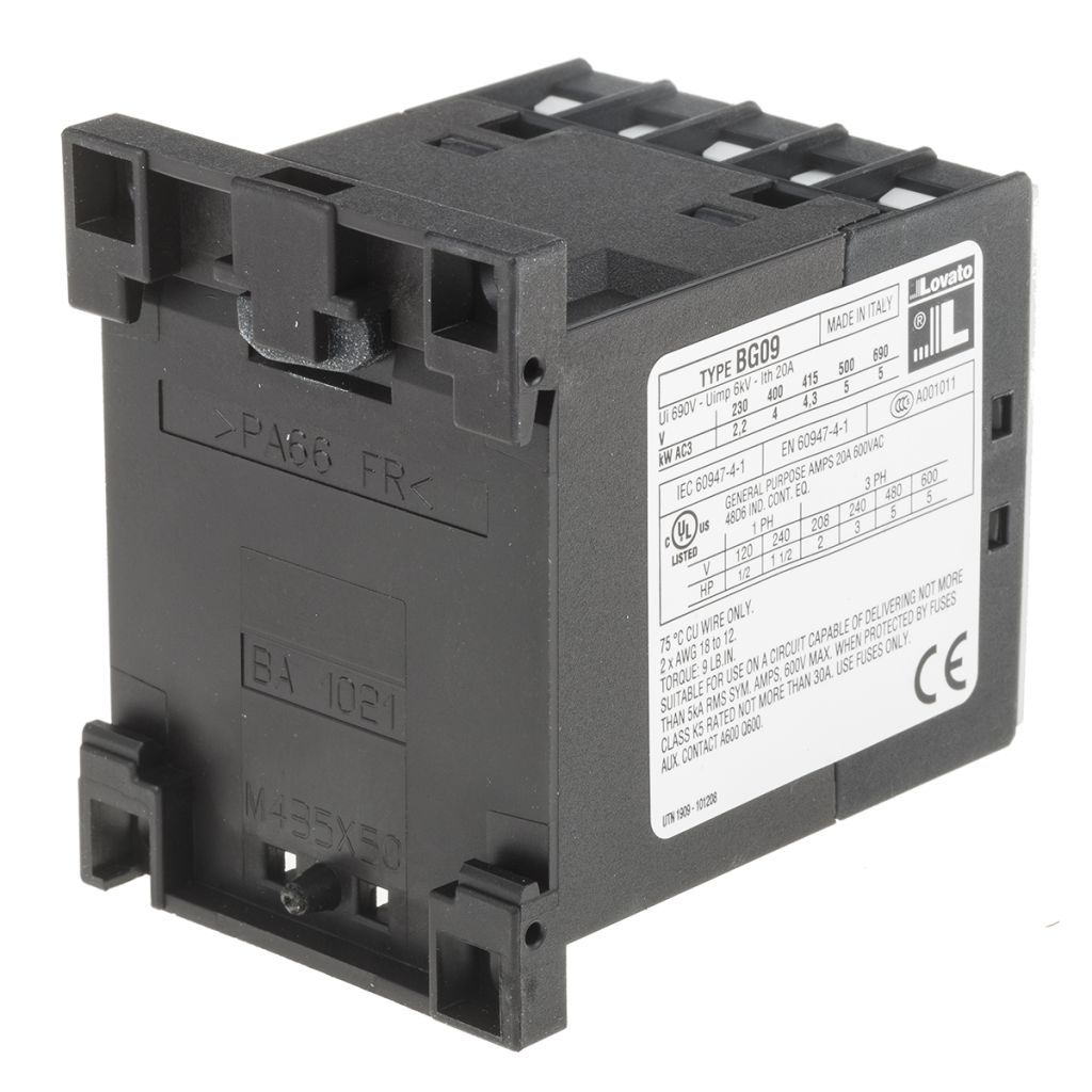 | Product description | Lovato Orange BG 3 Pole Contactor - 9 A, 400 V ac Coil, 3NO + 1NO, 4 kW |