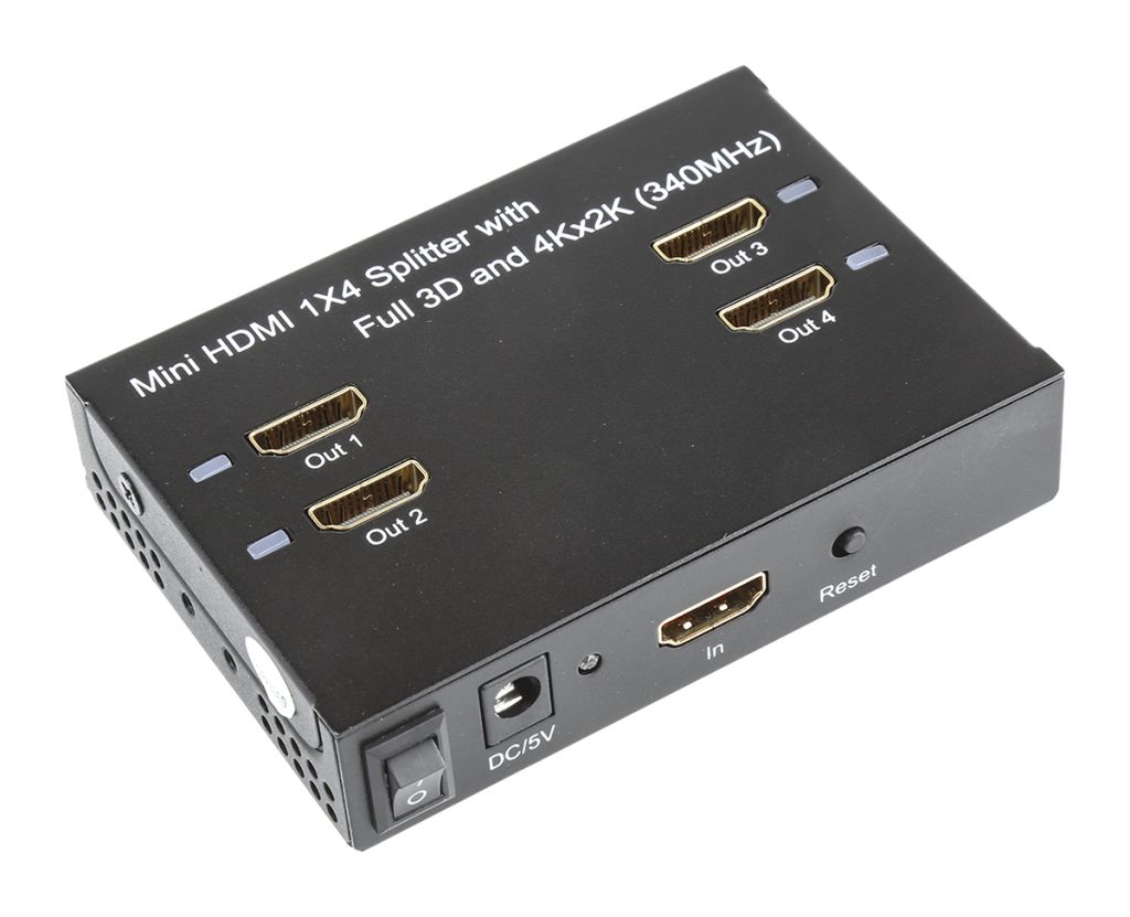 The 4 Port HDMI High Speed Splitter supports features from the HDMI High Speed standard. With 340MHz bandwidth is can split 3D input to four 3D displays and 4K by 2K resolutions