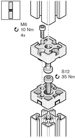 For straight extending of 30x30, 40x40, 45x45 and 50x50 strut profiles