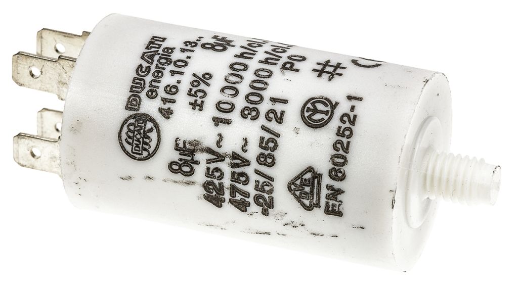 | Product description | Ducati Energia 4.16.10 Polypropylene Film Capacitor, 450V ac, ±5%, 8μF, Stud Mount |