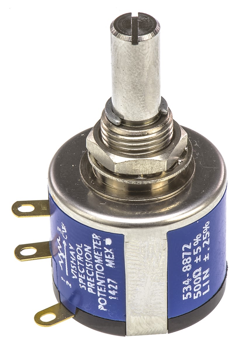 | Product description | Vishay 500Ω Rotary Potentiometer 10-Turns 1-Gang Panel Mount, 534B1501JC8872 |