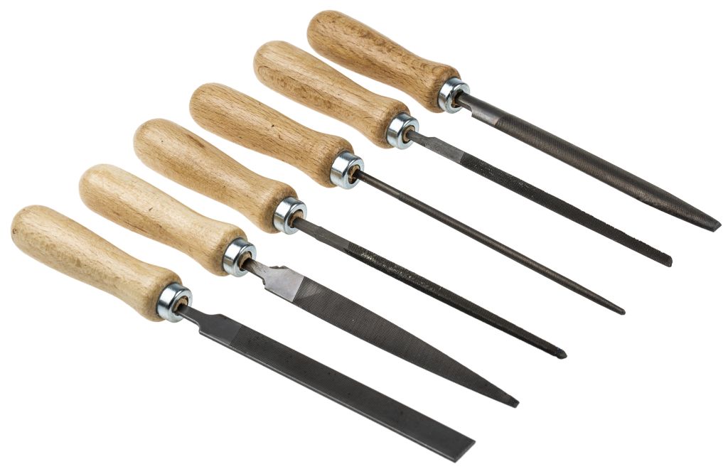 Set comprises one each, flat, warding, square, three-square, round, and half-round