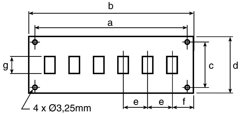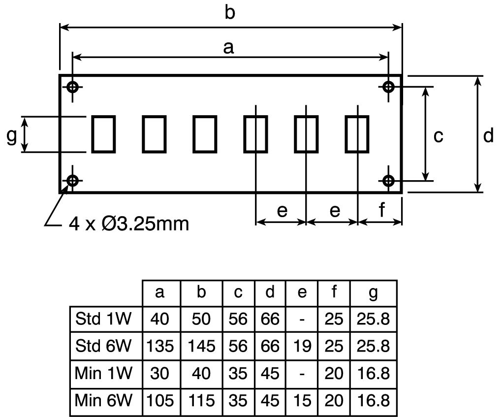Both miniature & standard panels have 4 x 3.2mm fixing holes, positioned 5mm centre line from