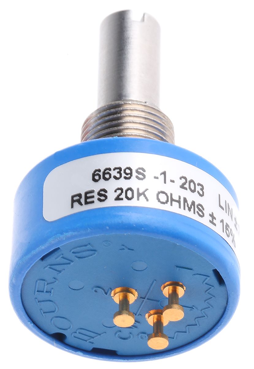 Bourns 20kΩ Rotary Potentiometer Continuous-Turns 1-Gang Panel Mount, 6639S-1-203