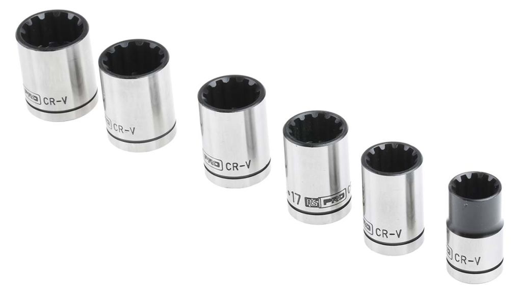 RS Pro 6 piece universal socket set makes all the difference when working in engine bays, in machinery, HVAC equipment, computer gear, bicycles and motorbikes applications.