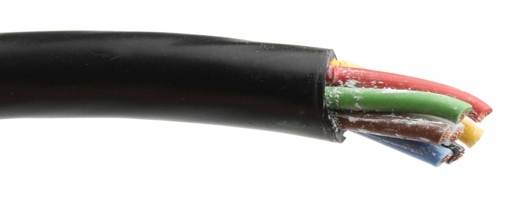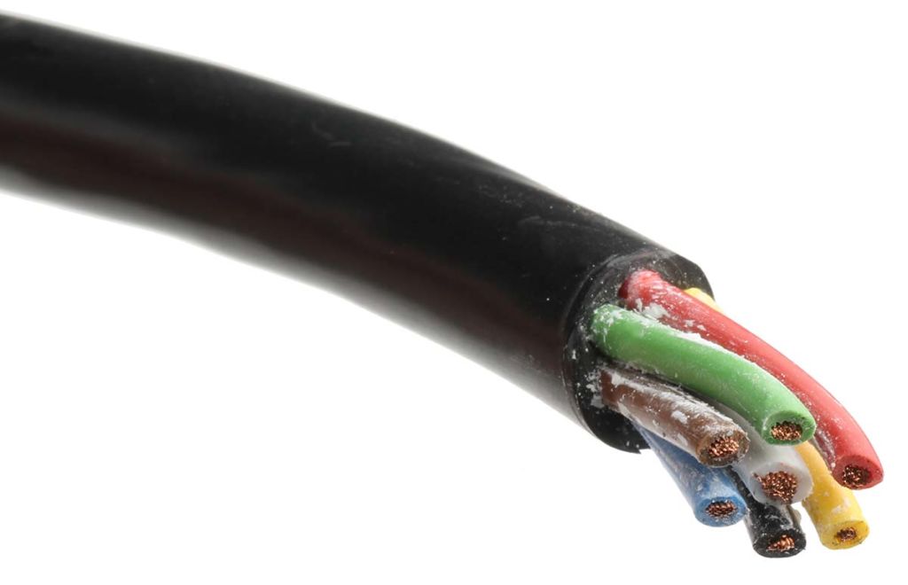 A trailer interconnection cable consisting of one central core of 2mm² and six surrounding cores of 1mm².