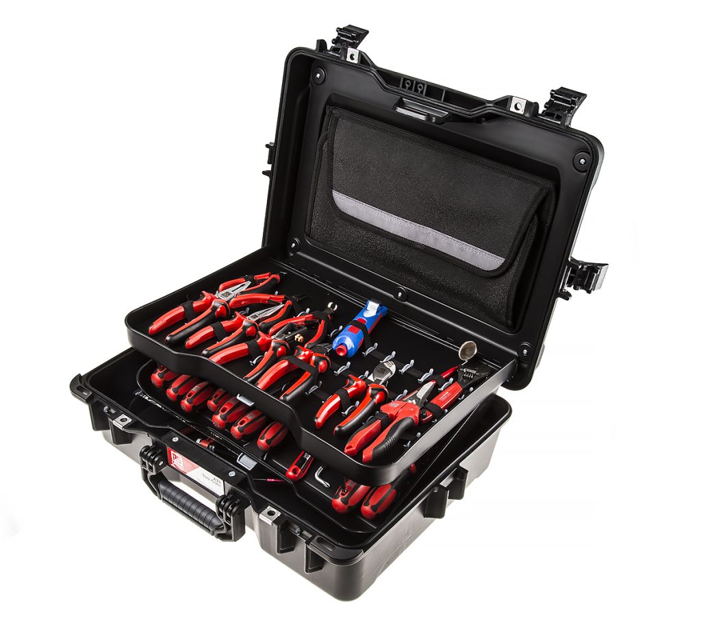 The kit comes supplied in our professional Raptor Tool Case with customisable tool organisation system. This case is an ideal choice for storing and organising tools and components for organisation and protection. The case itself is waterproof and impact-resistant, making it ideal to combat the hard elements of worksites where dust, debris or environmental factors are prevalent and offers an IP rating of 67. The stackable case with a soft grip handle is an ideal tool storage case which is highly versatile for technicians, engineers and maintenance operatives.