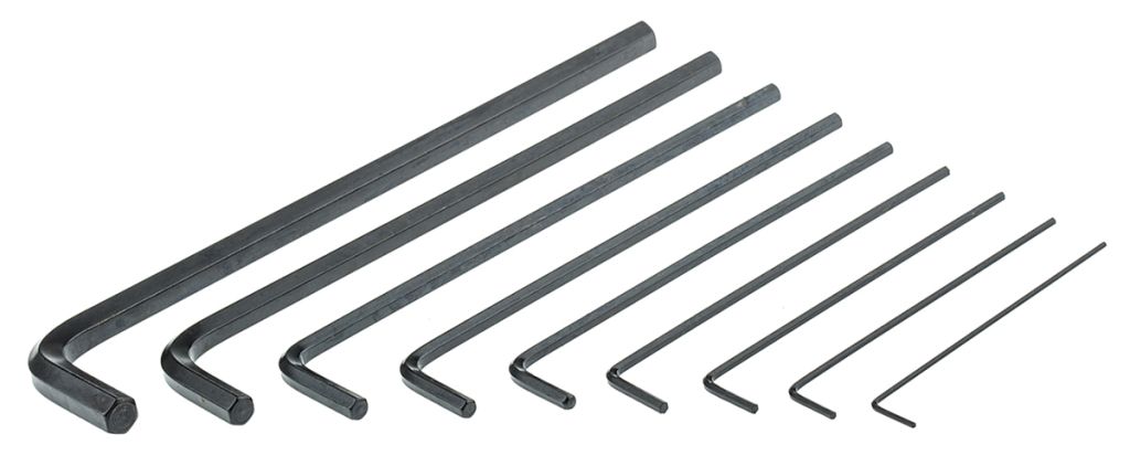 Metric and imperial long arm hexagon keys in chrome vanadium steel with chemically blackened finish