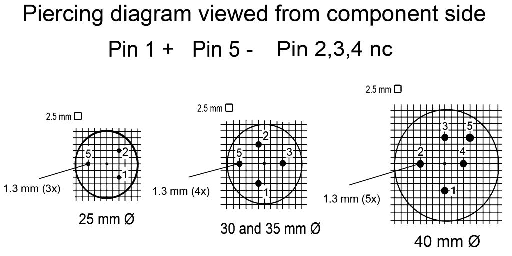Terminals 2, 3, and 4 may be at negative terminal potential due to the presence of electrolyte. Intended for mechanical connections only. It is recommended that they be soldered to the printed circuit board on isolated pads