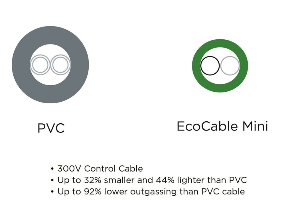 mPPE has a lower specific gravity compared to other jacket and insulation materials such as PVC and PE. This combined with the excellent dielectric properties allow the cables to be up to 65% lighter and thinner than conventional cables.