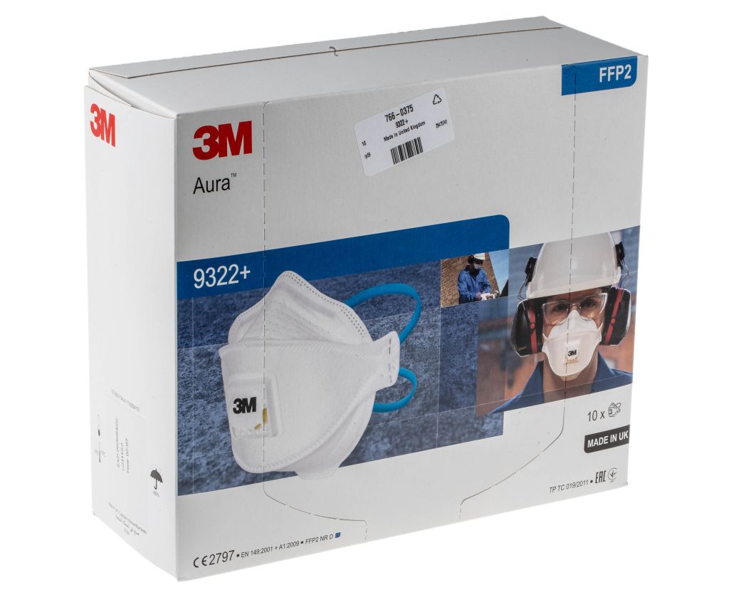 3M Aura+ 9322+ Disposable Face Mask, FFP2, Valved