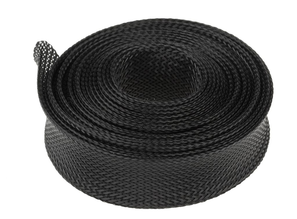 Expandable braided cable sleeving is lightweight and flexible and provides a protective covering for electrical wires, cables, and hoses. This expandable construction of this braided sleeve also makes it ideal for use as a cable management sleeve for bundling cables together and wire harnessing. This braided PET sleeving is used in a wide range of applications in automotive, electronic, computer, industrial and marine industries and can also be used around the home and office for keeping your computer, TV, and home entertainment cables tidy.