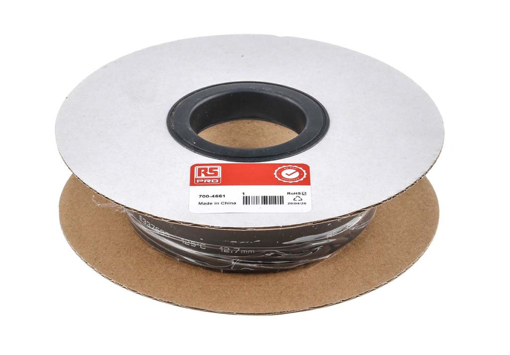 RS PRO Heat Shrink Tubing, Black 12.7mm Sleeve Dia. x 6m Length 2:1 Ratio