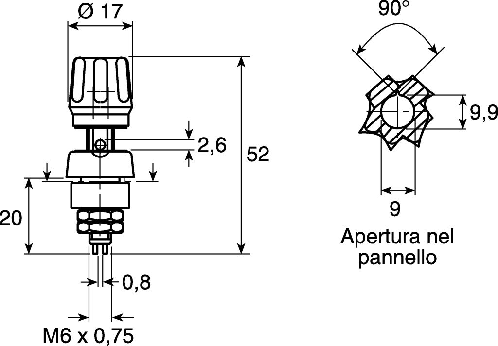 | Product description | Hirschmann Test & Measurement 4mm Black Terminal Post, 60V dc, 63A, M6 x 0.75 Thread |