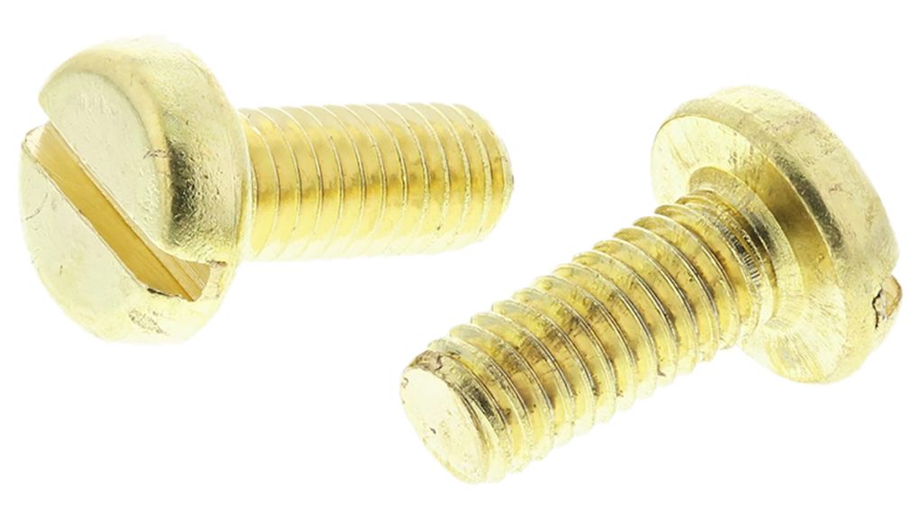 From RS PRO a high-quality slotted pan head machine screw with a metric thread for easy fastening with a flat bladed screwdriver. This pan head machine screw is made from high-quality brass which has resistance to corrosion and moisture making it ideal for exterior use.