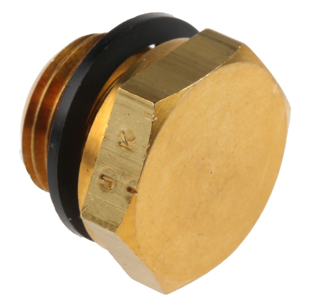 A brass threaded blanking plug for blanking off M5 and BSP ports. Temperature range -40 to +100°C.