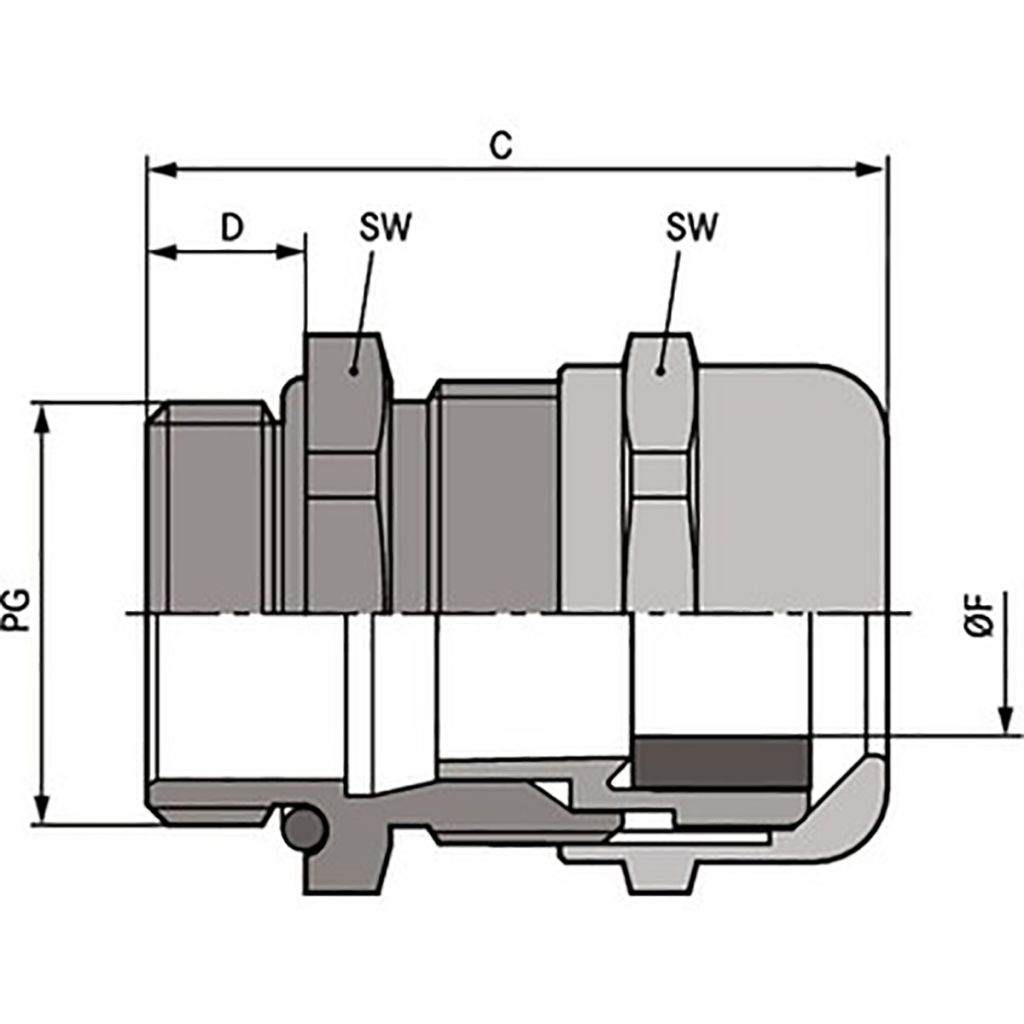 The cable gland is sealed to IP68, which means it has excellent protection against particle ingress, and is water proof even when immersed. This means the glans is suitable for use in harsh environments, and even some open air applications.