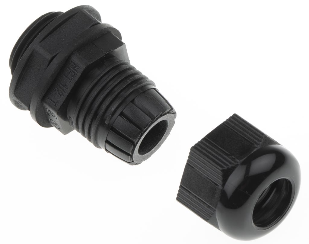 | Product description | Alpha Wire FIT PA 6 NPT 1/2in Cable Gland With Locknut, 12mm, IP66, IP68, Black |