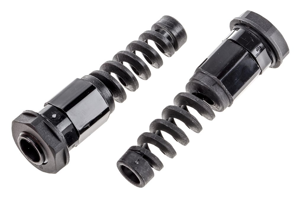These RS PRO spiral cable glands are an ideal way to support and protect cable connections. They provide strain relief for moving, flexible cables preventing them from breaking and ensuring the cables reliability and stability.