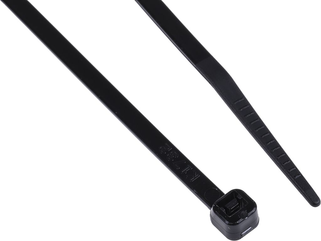 RS PRO Black Nylon Heat Stabilised Cable Tie, 180mm x 3.6 mm