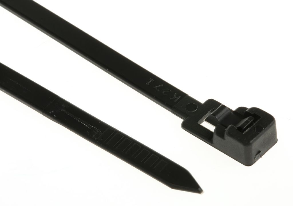 RS PRO Black Nylon Releasable Cable Tie, 250mm x 4.5 mm