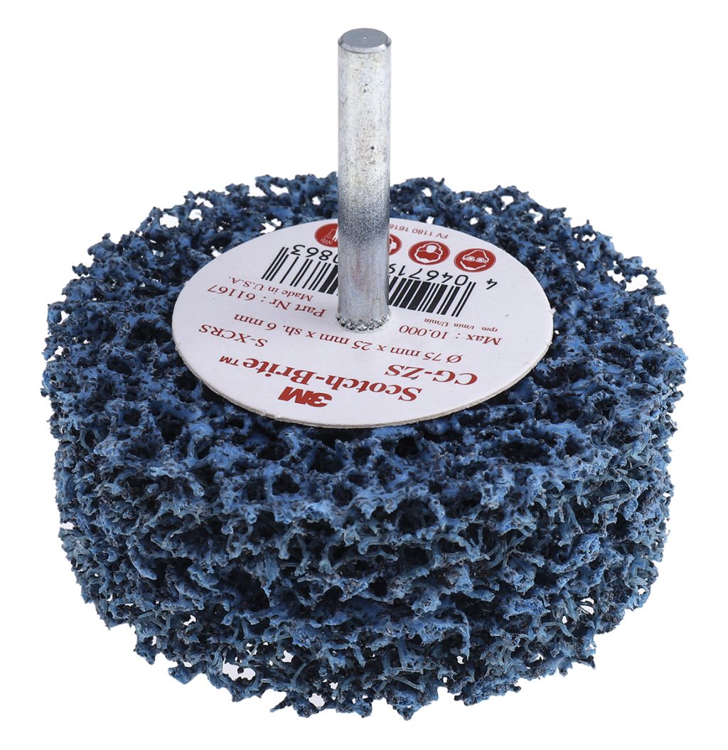 The Scotch-Brite™ Clean and Strip disc is a surface conditioning disc that combines a long lasting abrasive and a spindle mounted attachment system. The non-woven disc uses silicon carbide mineral abrasive offering a continuous fast cutting action and consistency. The fibres use resin which will dissolve and break down over time, allowing them to stay strong and heat resistant. Suitable for removing paint and rust from seams, doors, moulding, welds and other tight areas.