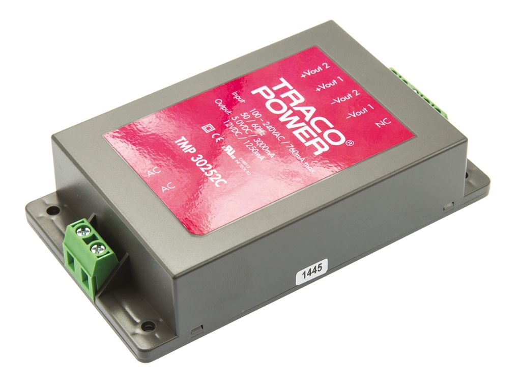 | Product description | TRACOPOWER Embedded Switch Mode Power Supply SMPS, 5 V dc, 12 V dc, 1.25 A, 3 A, 30W Encapsulated |