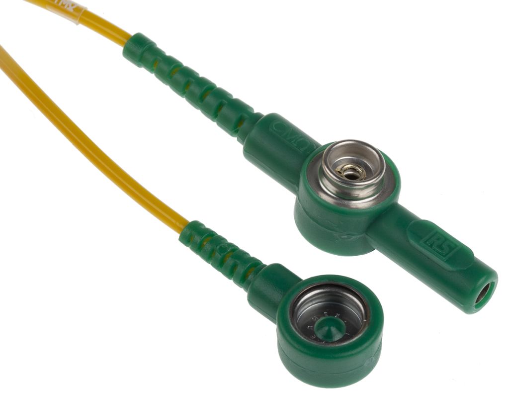 RS PRO high quality common point ground wires which are ideal for connecting floor mats, bench mats and wrist bands to earth.