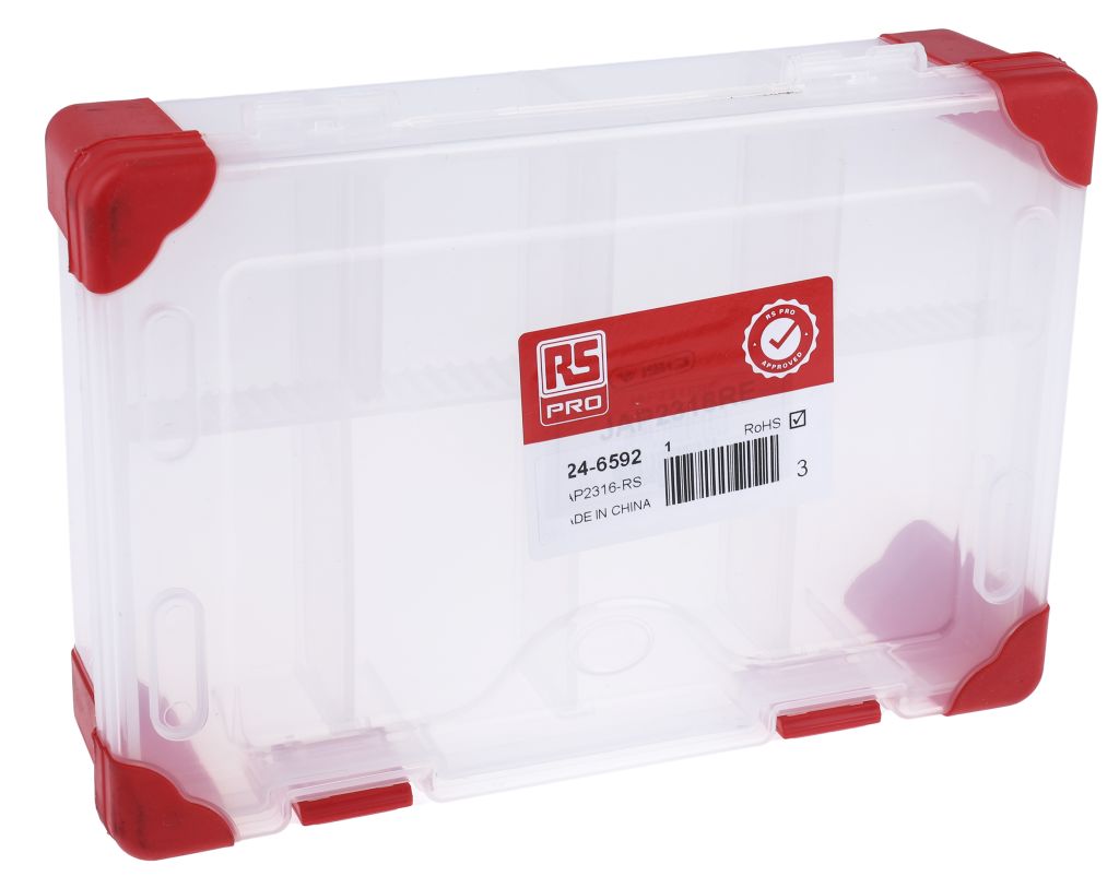 | Product description | RS PRO Transparent Polypropylene Compartment Box, 60mm x 240mm x 170mm |