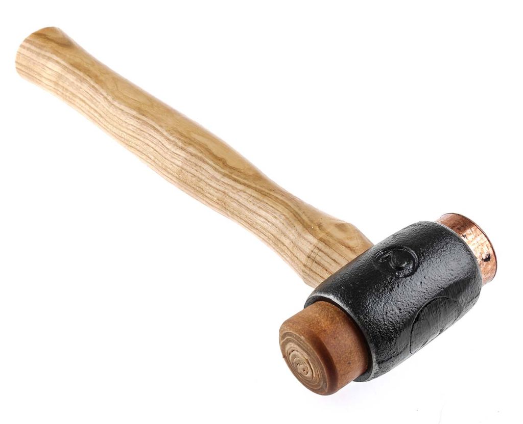 • Round copper and hide faces on each end of the hammer