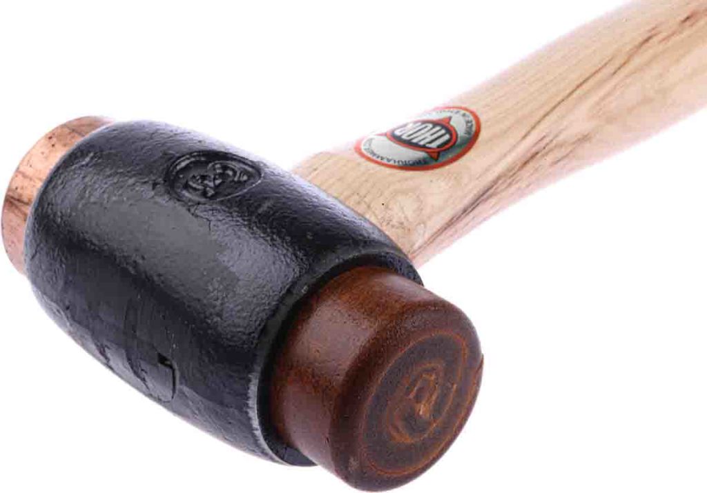 • Round copper and hide faces on each end of the hammer