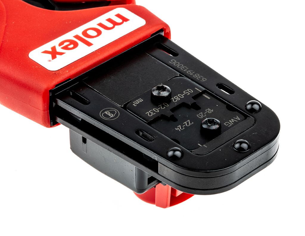 From Molex a PremiumGrade manual crimping tool made from high-quality materials and designed to crimp to a high specification. This PremiumGrade crimp tool has been tested to a minimum of 50000 cycles. If the tool is looked after and maintained it produces crimps to the highest specification during this life span. This crimping tool consists of two ergonomically designed soft grip handles with an adjustable preload force, ratchet mechanism, die assembly and terminal locator.