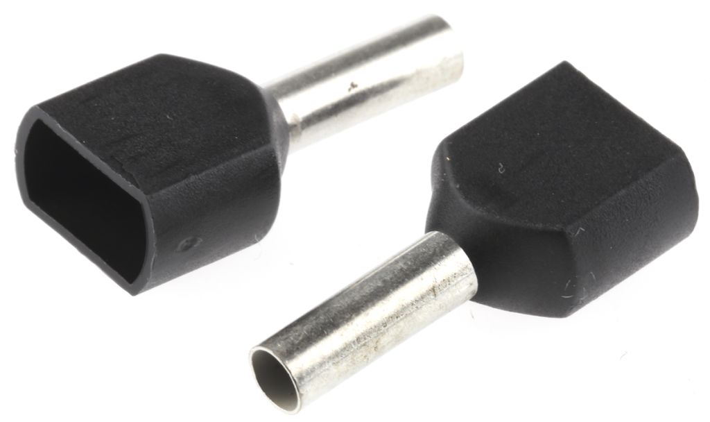 Product description TE Connectivity Insulated Crimp Bootlace Ferrule, 8mm Pin Length, 2.2mm Pin Diameter, 2 x 1.5mm² Wire Size, Black