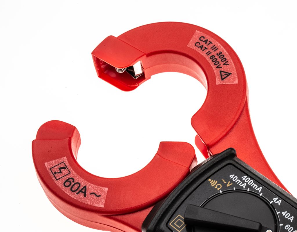 This current clamp meter is designed for current measurement in electrical testing, and combines a digital multimeter with a clamping current sensor. The nature of the clamp means that it can fit around a wire at any point to sense AC current and voltage. This has the advantage of allowing electricians to take a reading from a conductor without touching it, which is both more convenient and safer than other methods.