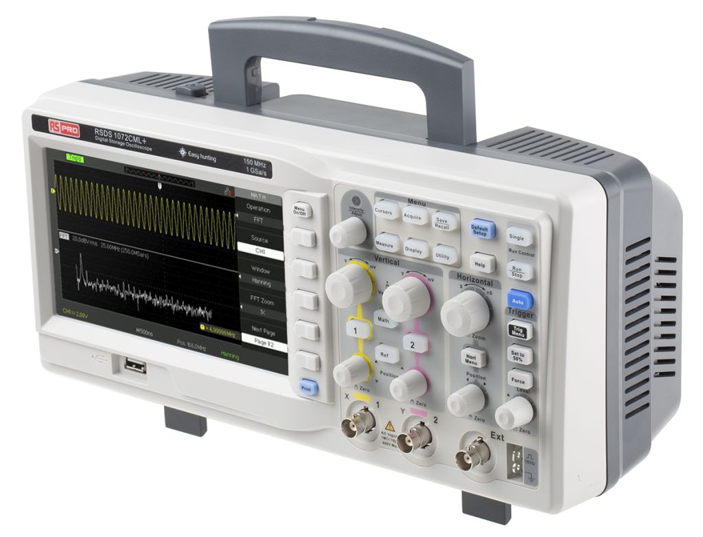 RS PRO RSDS1000CML+/DL+ Series is a dual-channel universal digital oscilloscope available in 50 MHz, 70 MHz, 100 MHz and 150 MHz bandwidth models.