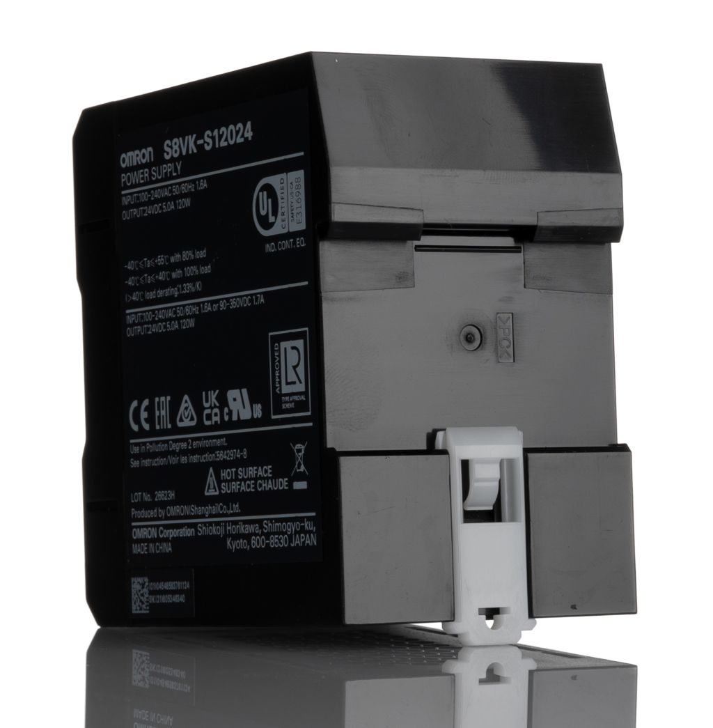 | Product description | Omron S8VK-S DIN Rail Power Supply 85 → 264V ac Input, 24V dc Output, 5A 120W |