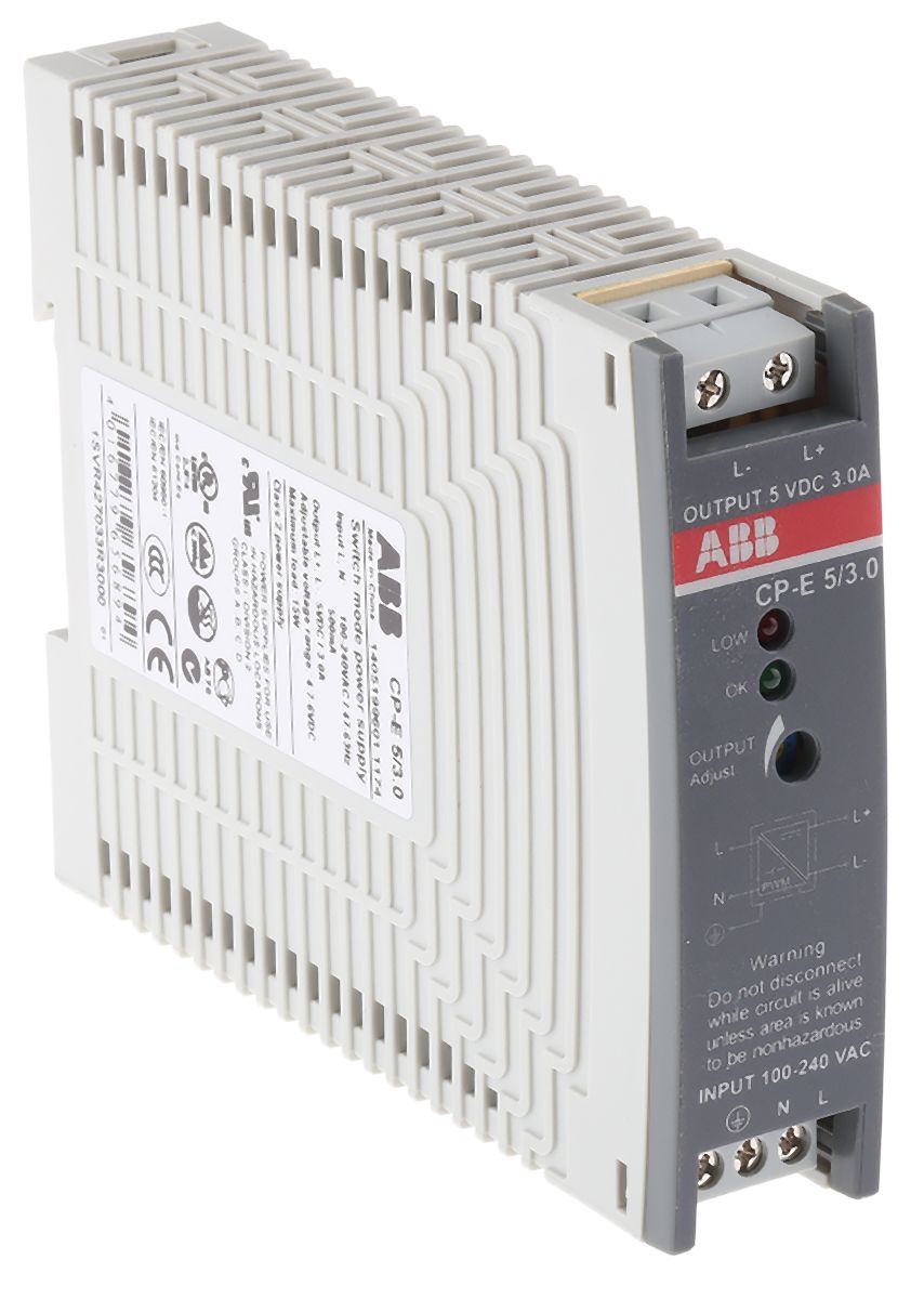 | Product description | ABB CP-E Switch Mode DIN Rail Power Supply 90 → 264V ac Input, 5V dc Output, 3A 15W |
