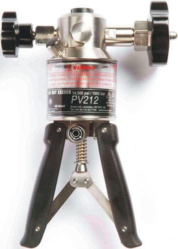 To quickly and easily generate hydraulic pressures of up to 700 bar (10,000 psi), Druck's PV212 hydraulic hand pump is the ideal choice. The pump provides a professional, high-quality solution for those using it within applications that include calibration checks on pressure transmitters, switches, indicators, recorders and controllers. Druck's hydraulic pump features an impressive dual stage pump that includes a selector valve, this valve increases the priming speed as well as significantly reducing the effort required to generate high pressures.