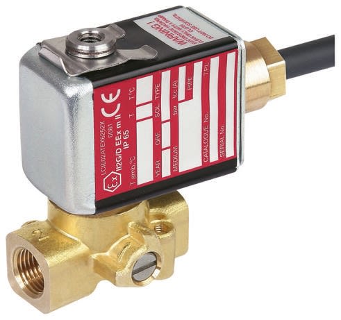 Compact solenoid valves suitable for most gas and fluid handling applications. Where practical, valves are shown with a schematic diagram showing the (circuit) function. The diagram is laid out so that the left-hand side of the diagram describes the valves operation when the coil is energised. When the coil is de-energised, the spring (or servo-assist) return controls the valve and is described on the right-hand side of the diagram. The 3 / 2-way designation indicates a valve with three ports and two modes of operation. It is normal practice to refer to 2 / 2-way valves as two ways. The port designations A, B, P, P1, P2 and R are used on the schematic diagrams and are marked on the valve bodies. Valve bodies are marked for a specific circuit function but can often be used for other functions. Reference to the schematic diagrams and technical specifications indicates the appropriate connections and pressure capabilities when an alternative circuit function is required.