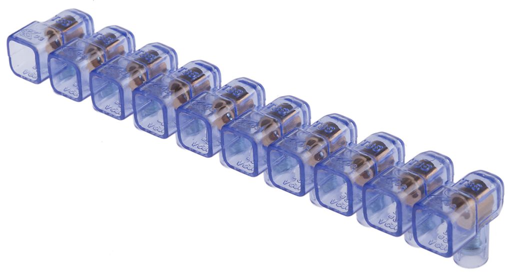 Quality single pole polycarbonate termination/terminal blocks. Available in singles and in 10-way strips. Designed for termination or the joining of cable ends.