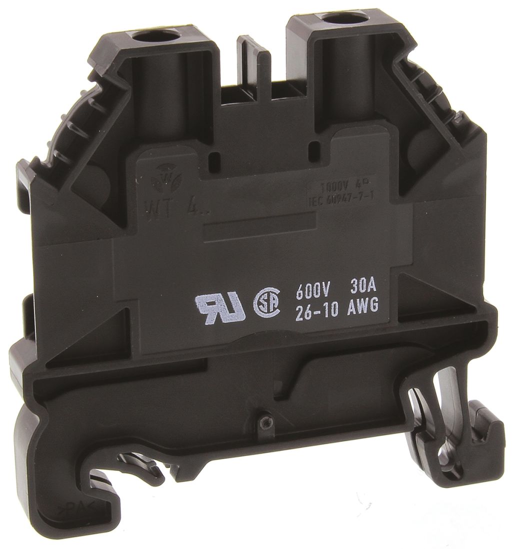 | Product description | Wieland Black WT 4 Feed Through Terminal Block, 26 → 10 AWG, ATEX, 1 kV |